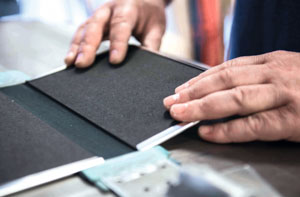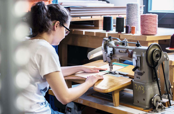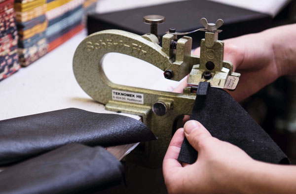 Handbound books, along with thread-sewn blocks and covers are part of the intricate construction process that requires great attention to detail and specialized skills. Extra materials are repurposed to meet the brand’s sustainability standards, ensuring no materials are wasted.